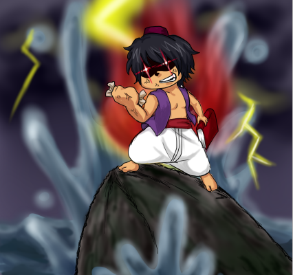 經歷了一連串的冒險犯難之後,風塵僕僕的阿拉丁好不容易終於得到了神燈。在他舉起神燈高興得眼眶泛淚時,剎那間他意識到了一個很大的問題--他要怎麼把神燈交給那個坑人的白衣算命師?該不會要大老遠跑回那個市集的街角吧!?就在阿拉丁一臉便秘望著那盞覆蓋著滿滿灰塵和蜘蛛網的神燈,突然間掌中的神燈發出刺眼的白光,白光瞬間化成人形,還有飛揚的斗篷,伴隨著「哈哈哈哈」的笑聲華麗出場!