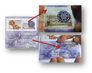 個人化郵票的右下方利用線網設計,將龍的圖像隱藏於底紋中,只要將光柵片覆蓋其上,龍的圖像就會立即浮現,增添趣味性。
