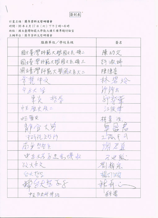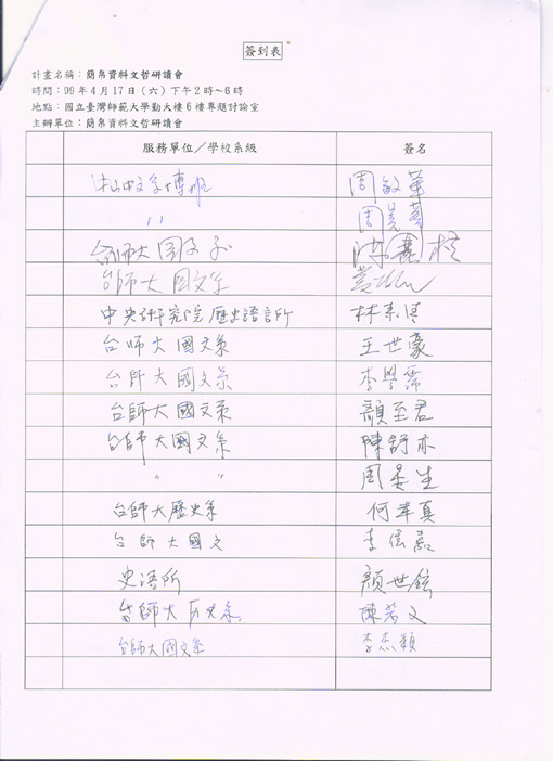 當日與會者簽名表: