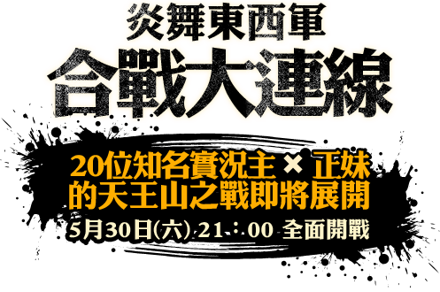 請各位大名準時於5月30日晚上9點進入以下實況台觀看精彩對決
